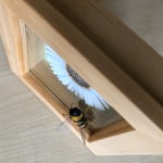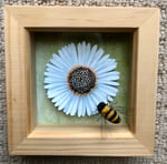 A paper cut daisy painted in acrylic, raised and framed in a dinky, natural wood frame.