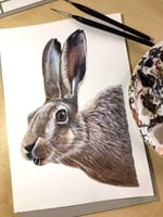 This gorgeous *Brown Hare has been printed actual size from my original painting on to white backed, re-positionable & removable vinyl wall art for your home.